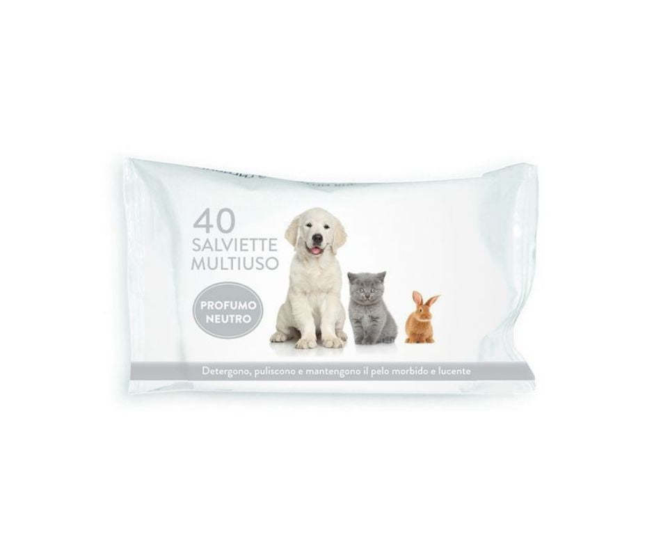 Salviette multiuso igienizzanti per animali. Detergono, profumano e mantengono il pelo morbido e lucente.