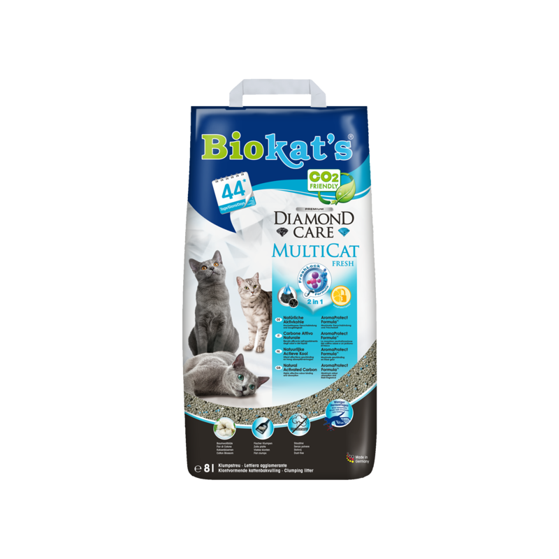 Diamond Care MultiCat fresh 8 Lt. di Biokat’s è un prodotto ideale e fatto su misura per le esigenze delle famiglie con più gatti.