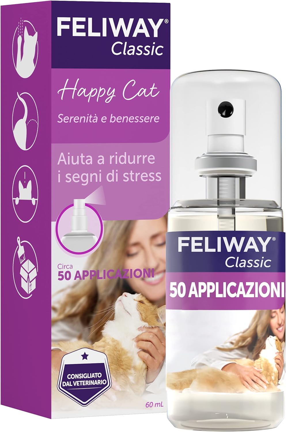 • COME FUNZIONA: I feromoni rappresentano una parte naturale e normale della comunicazione dei gatti. FELIWAY Classic Spray utilizza una versione sintetica o analoga dei feromoni naturali per trasmettere messaggi di benessere e ridurre comportamenti come nascondersi, graffiare o spruzzare in casa o in macchina.