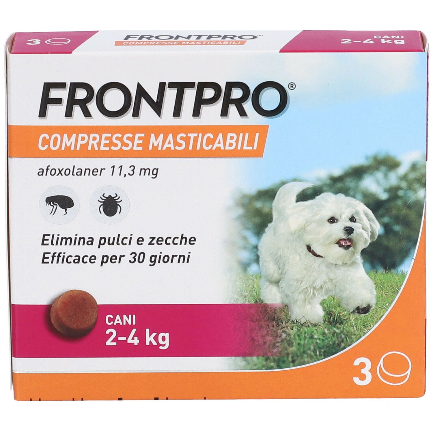Le compresse sono masticabili e appetibili per la maggior parte dei cani. È possibile somministrare le compresse con il cibo nel caso il cane non accettasse di assumerle direttamente.