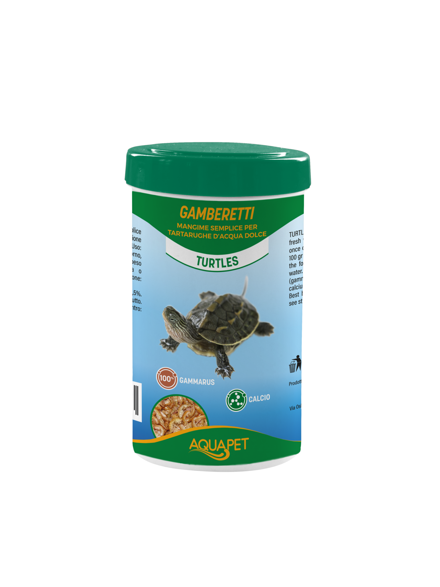 GAMBERETTI Per Tartarughe 250ML è un mangime semplice appositamente studiato per una sana alimentazione di tartarughe d’acqua dolce di grossa taglia.